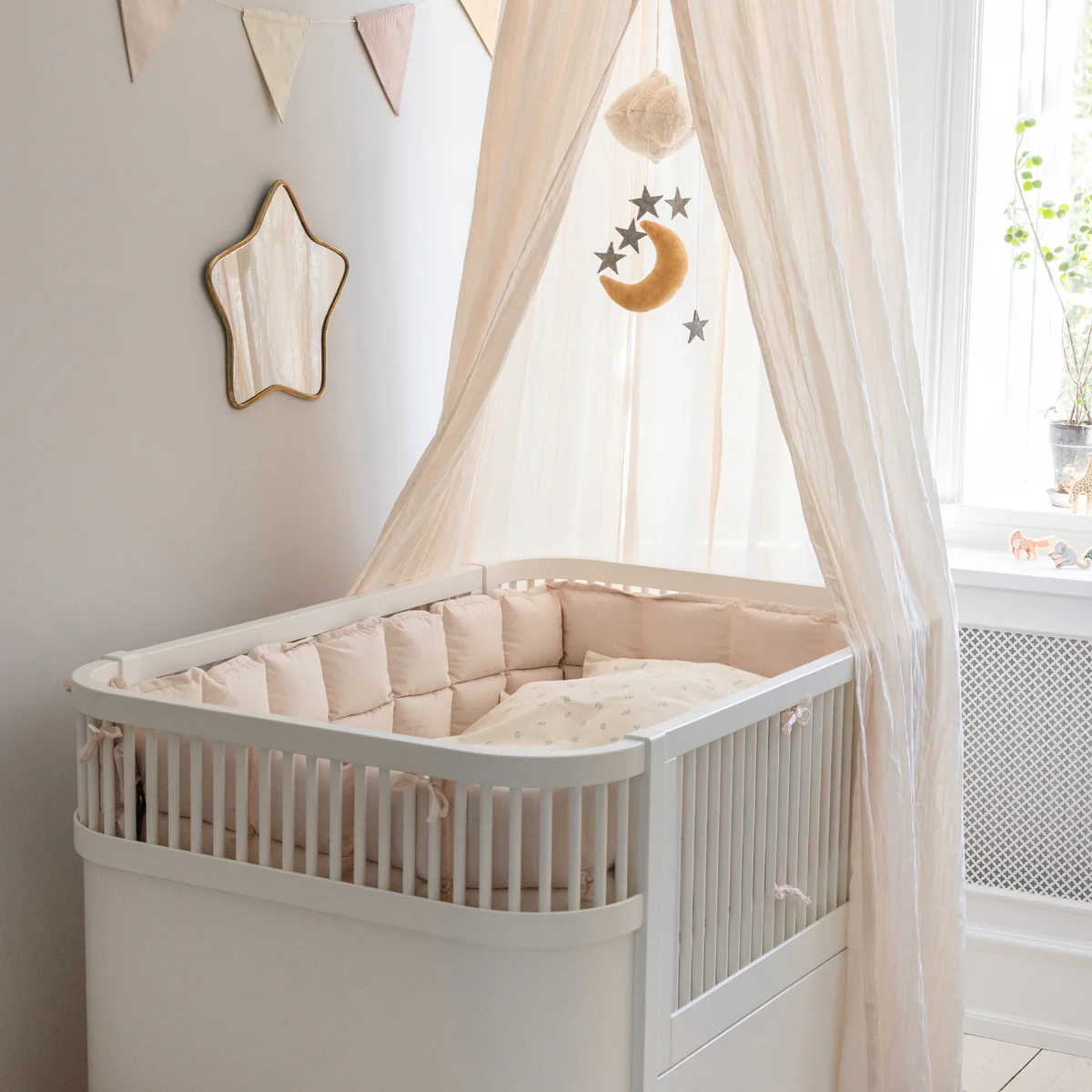 Bringen Sie Komfort und Sicherheit in das Kinderbett Ihres Babys mit dem Baby Bumper in Kapok Birchbark Rose L von Sebra. Dieser Stoßfänger aus weichem, atmungsaktivem Kapok bietet eine gepolsterte Barriere um das Kinderbett, um Ihr Baby vor Stößen zu schützen und einen ruhigen Schlaf zu gewährleisten. Die natürliche Kapokfüllung ist sanft und umweltfreundlich und bietet eine komfortable und sichere Umgebung für Ihr Kind. Die schöne Farbe Birchbark Rose verleiht dem Kinderzimmer einen warmen, beruhigenden Touch und passt zu verschiedenen Krippendesigns und Einrichtungen. Einfach zu befestigen und sicher, ist diese Baby-Stoßstange die perfekte Ergänzung für Ihr Kinderbett und bietet sowohl Sicherheit als auch Stil für den Schlafplatz Ihres Kindes.